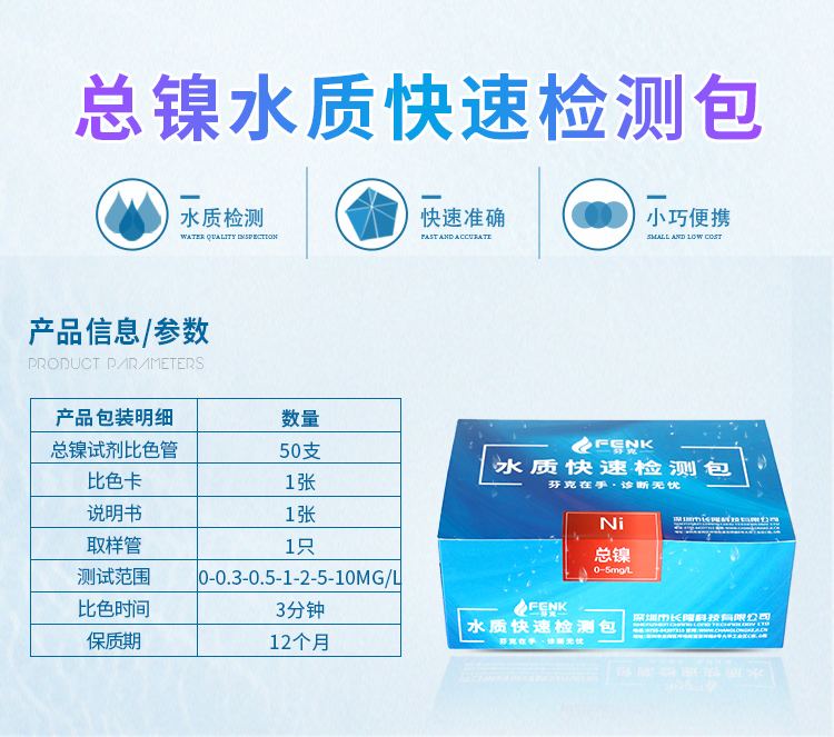 3.水體中鎳主要以較穩(wěn)定的二價鎳形式存在,故本產(chǎn)品以測定二價鎳來判斷水中總鎳含量。