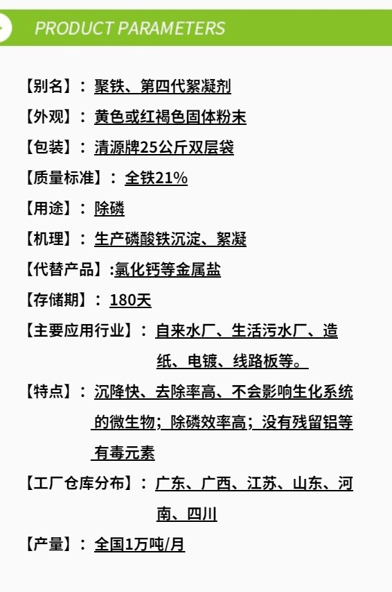 1.高效:聚合硫酸鐵是復合型高分子聚合物,分子結構龐大,吸附能力強,凈水效果優于所有傳統的無機凈水劑;