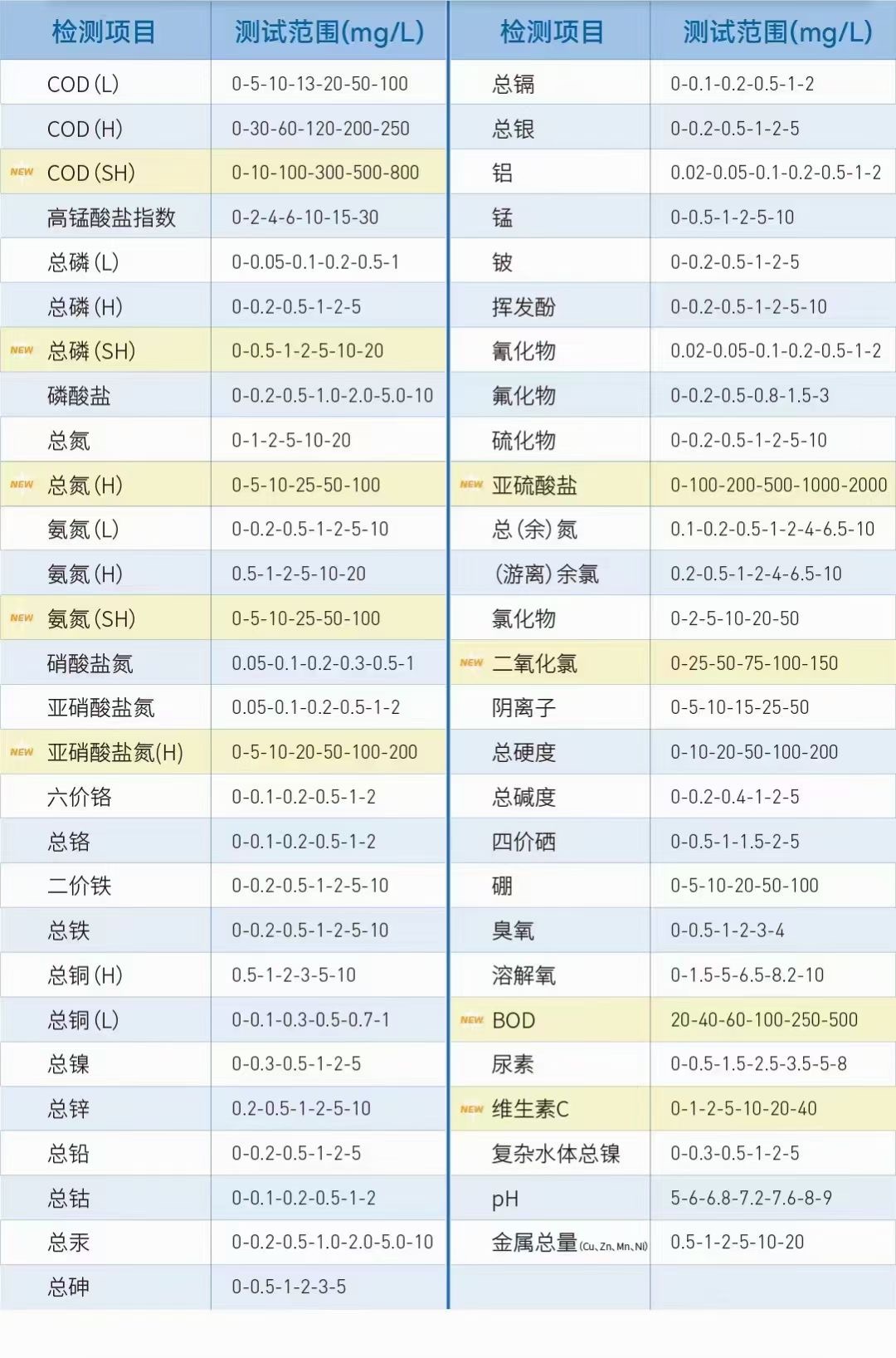 ④、種類齊全:65款常見水質(zhì)污染物等, 檢測(cè)項(xiàng)目多, 檢測(cè)范圍廣;